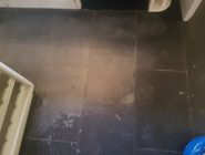 The Client was advised by the installer that nothing could be done to restore the floor tiles and that complete replacement would be necessary,  when i visited the site my initial  reaction was of concern but i advised that a test area be done first,  the slate stone is a riven finish to the face and therefore not as simple as grinding out.